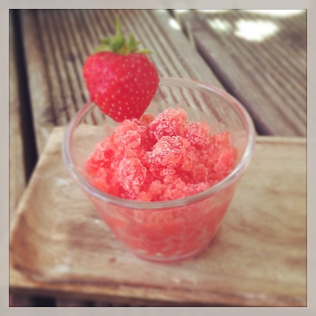 Im kühleren Wohnzimmer wollte ich euch dann wenigstens die Erdbeer-Limetten-Granita auf FB posten, die ja schon vom letzten Sommer stammt.