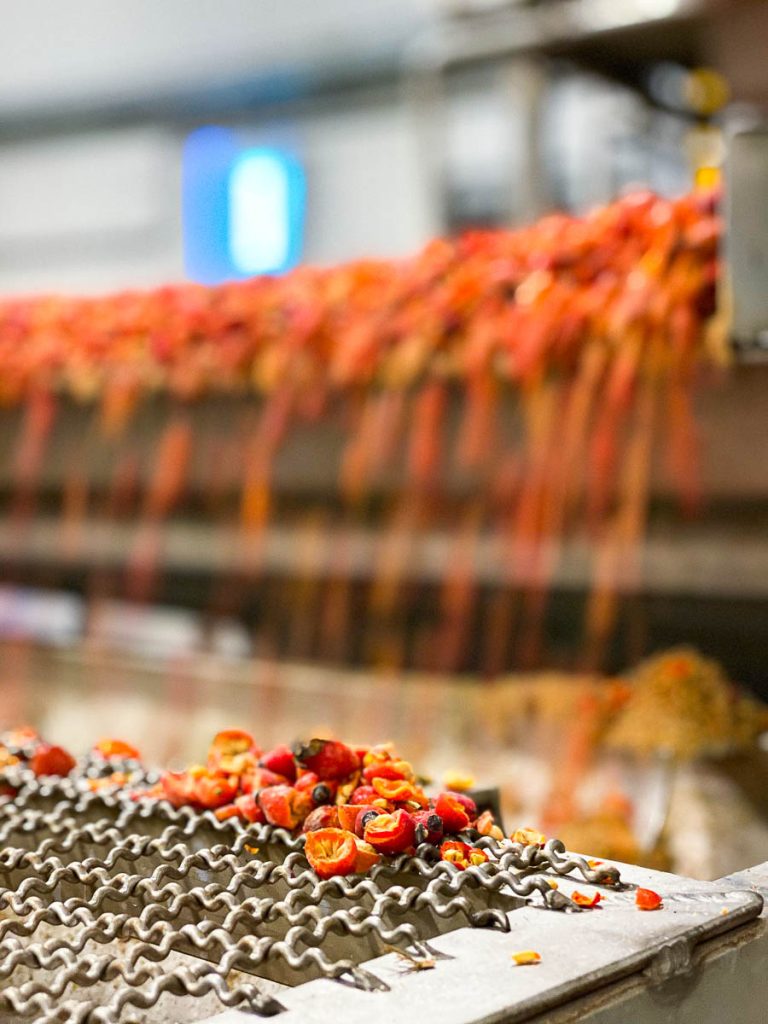 Nach der Ernte werden die Hagebutten tiefgefroren, um das ganze Jahr für die Herstellung der Konfitüre vorrätig zu sein. Und dann beginnt die richtige Arbeit vor Ort in Haßfurt. Die tiefgefrorenen Hagebutten werden gemahlen und von den Kernen und Härchen befreit. Aus der Hagebuttenschale wird dann das Hagebuttenmark gewonnen, das Ausgangsprodukt für meine liebste Hagebutten-Konfitüre, die lediglich in kleinen Chargen im Vakuumkessel gekocht wird. Wie das duftet, durfte ich vor Ort miterleben! Wenn du Lust hast, dann schau dir meinen Artikel darüber gerne an!