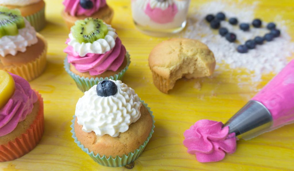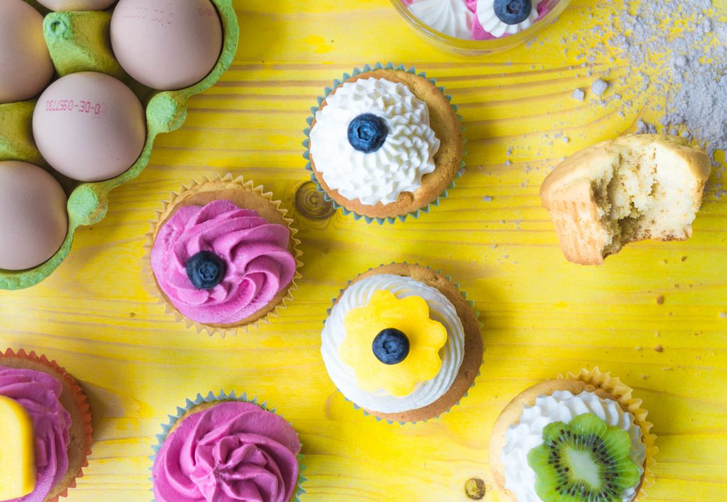 Statt bunter Streusel oder Schokolade habe ich meine Cupcakes mit Obst dekoriert, einfach Kiwi und Mango ausgestochen, gesund, clean und lecker!